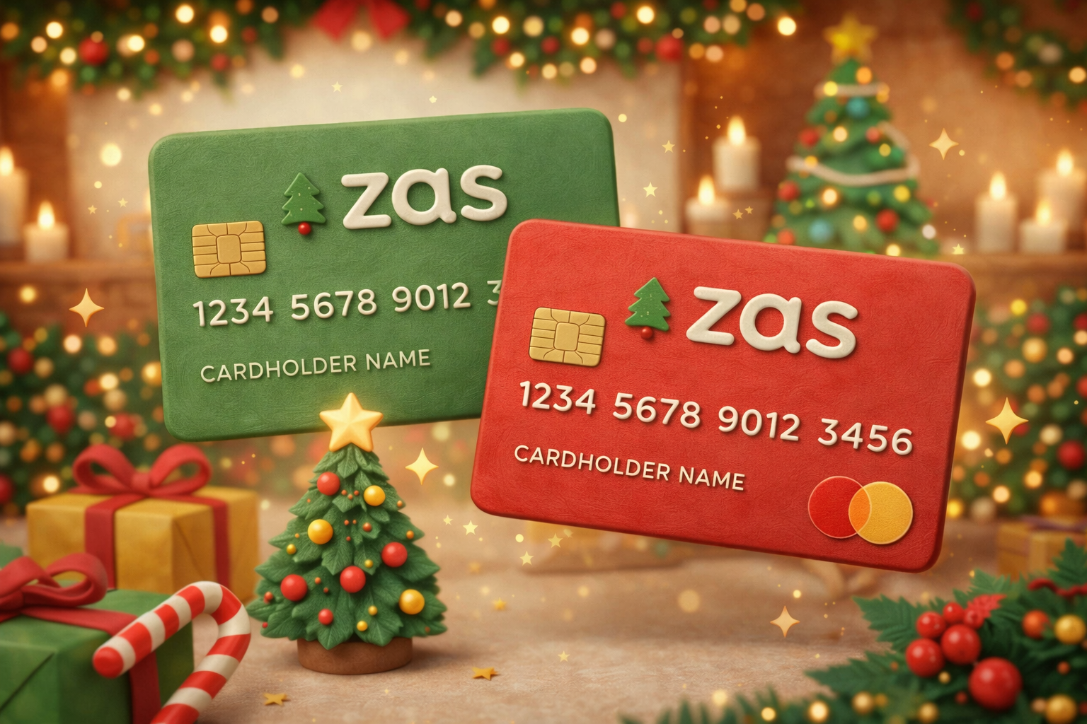Zas es un sistema de ahorro programado para preparar tus tarjetas regalo con tiempo: eliges importes y destinatarios, configuras tus cuotas por domiciliación SEPA mensuales y nosotros nos encargamos de la emisión y envío para que llegues a diciembre con todo listo desde el primer día.
